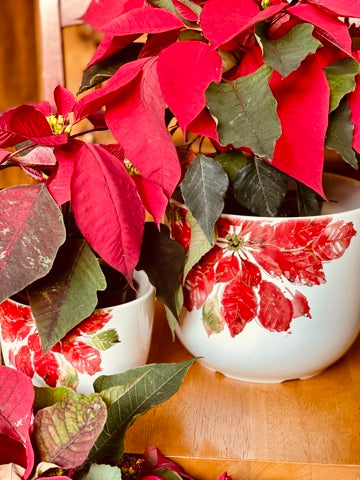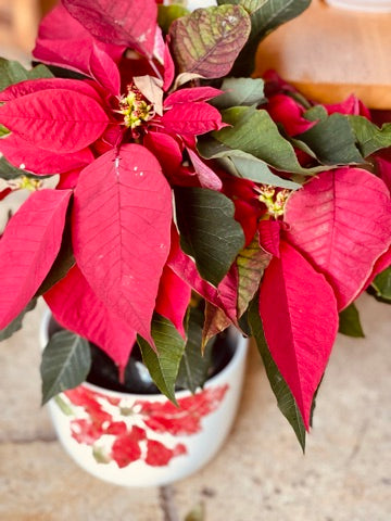 FRESH POINSETTIA & DECORATIVE CERAMIC PLANTER