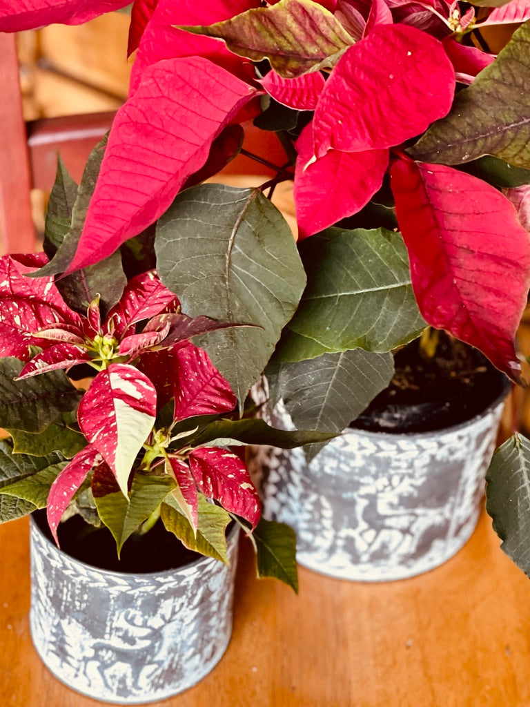 FRESH POINSETTIAS IN DECORATIVE TINS