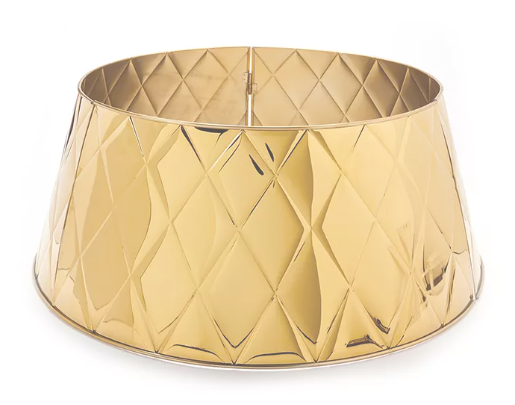 The round profile made from metal features a metallic gold finish with a stamped diamond pattern.