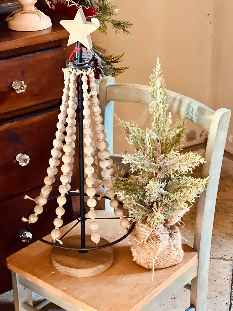 26" INCH IRON & WOOD BEADS HOLIDAY TREE