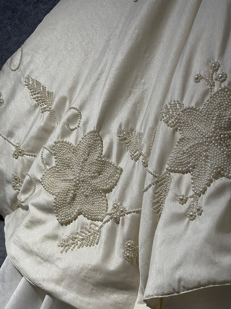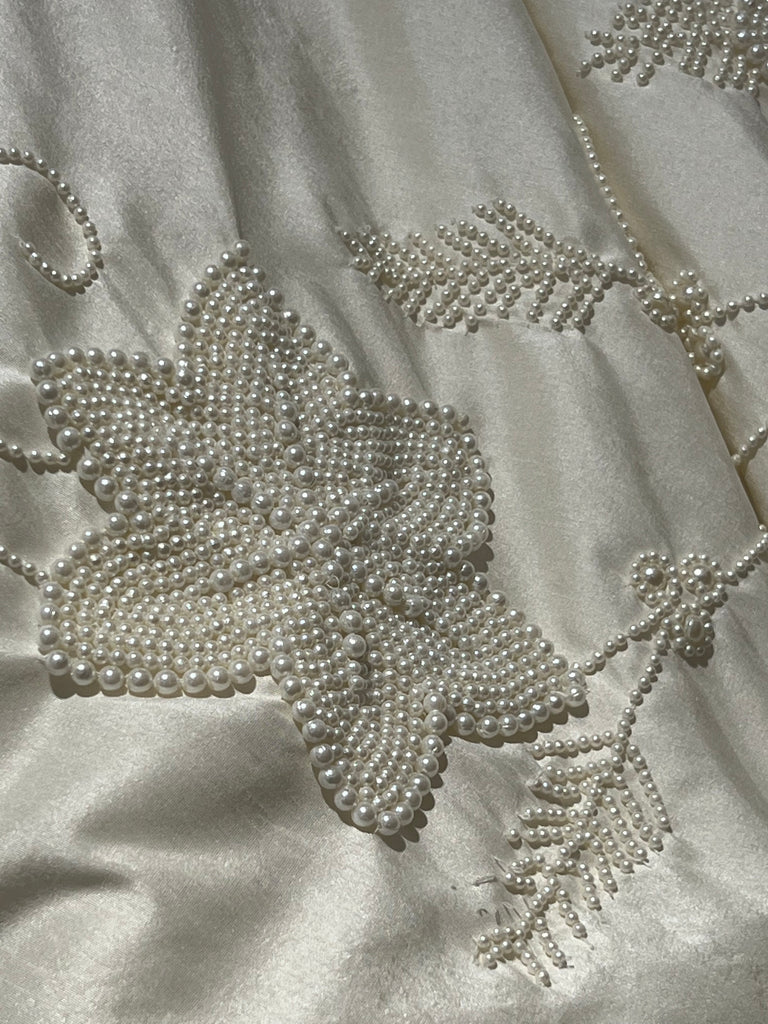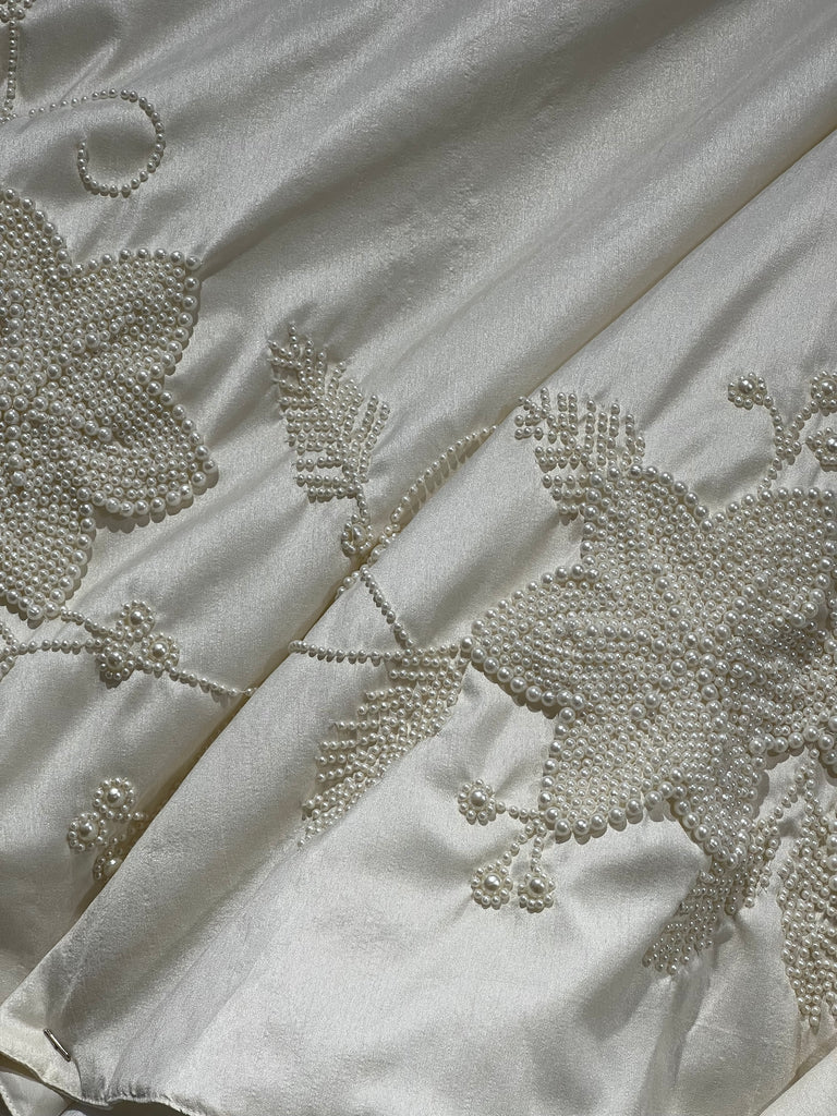 54" INCH IVORY WITH PEARL BEADS TREE SKIRT