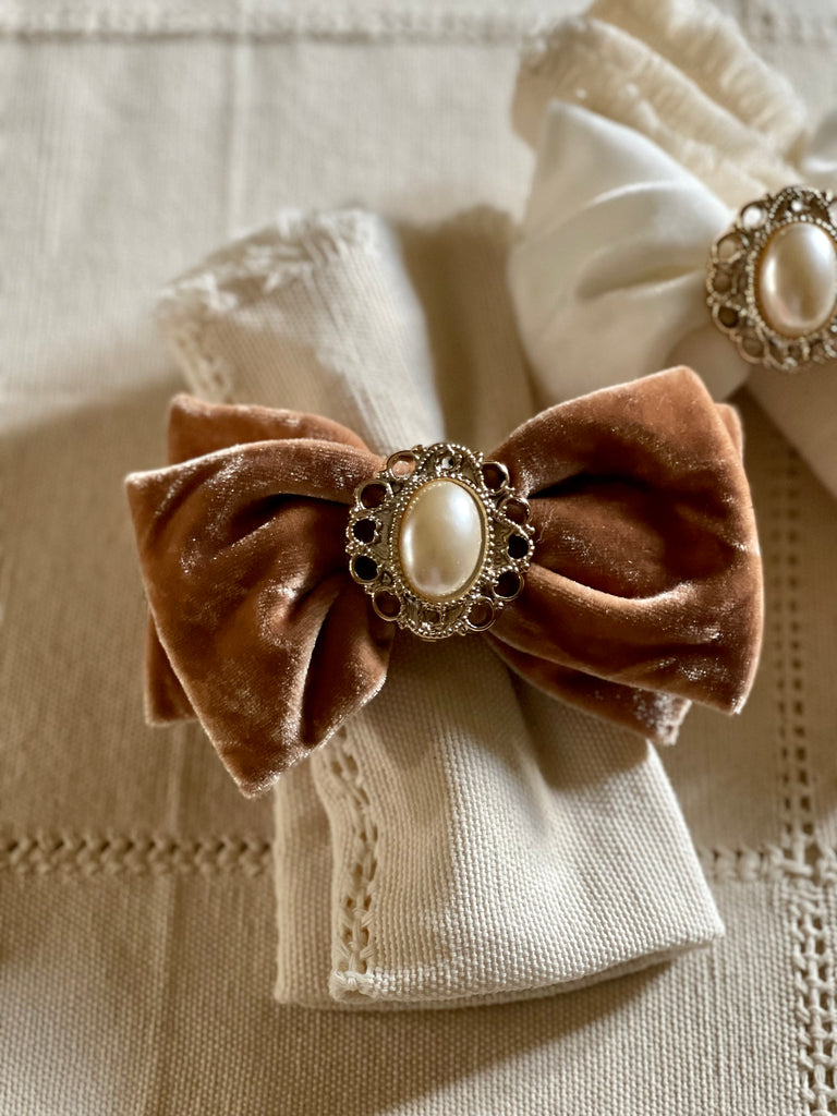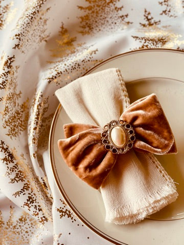 Beautiful lush velvet napkin rings with gold pearl accent to light up a beautiful home!