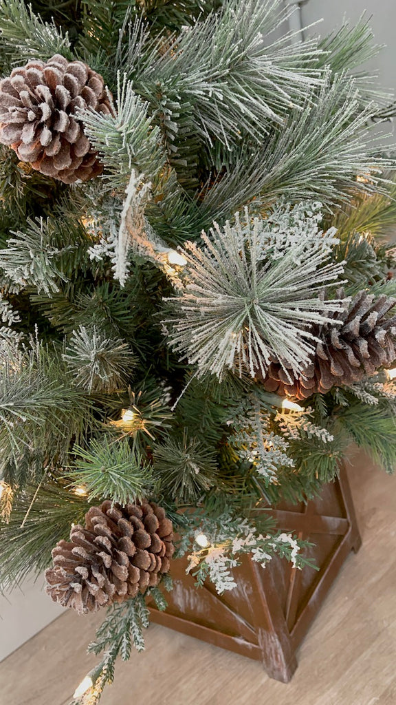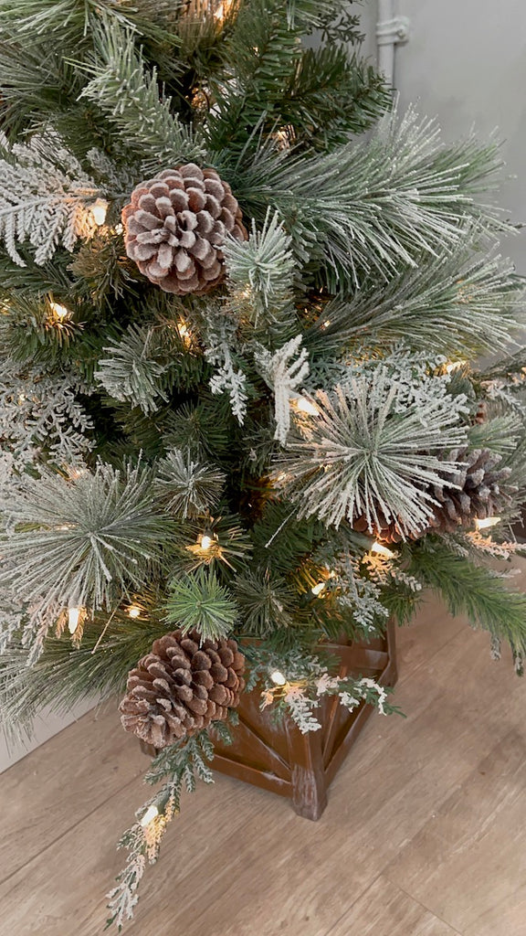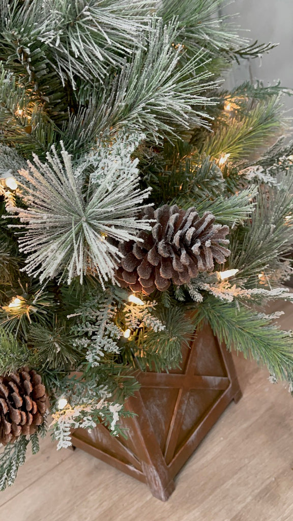 5 FT WINTERLODGE MIXED PINE LIGHTED TREE IN BROWN CRATE CONTAINER