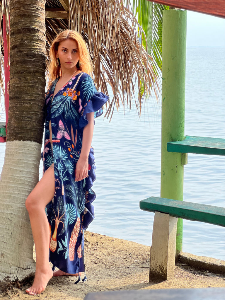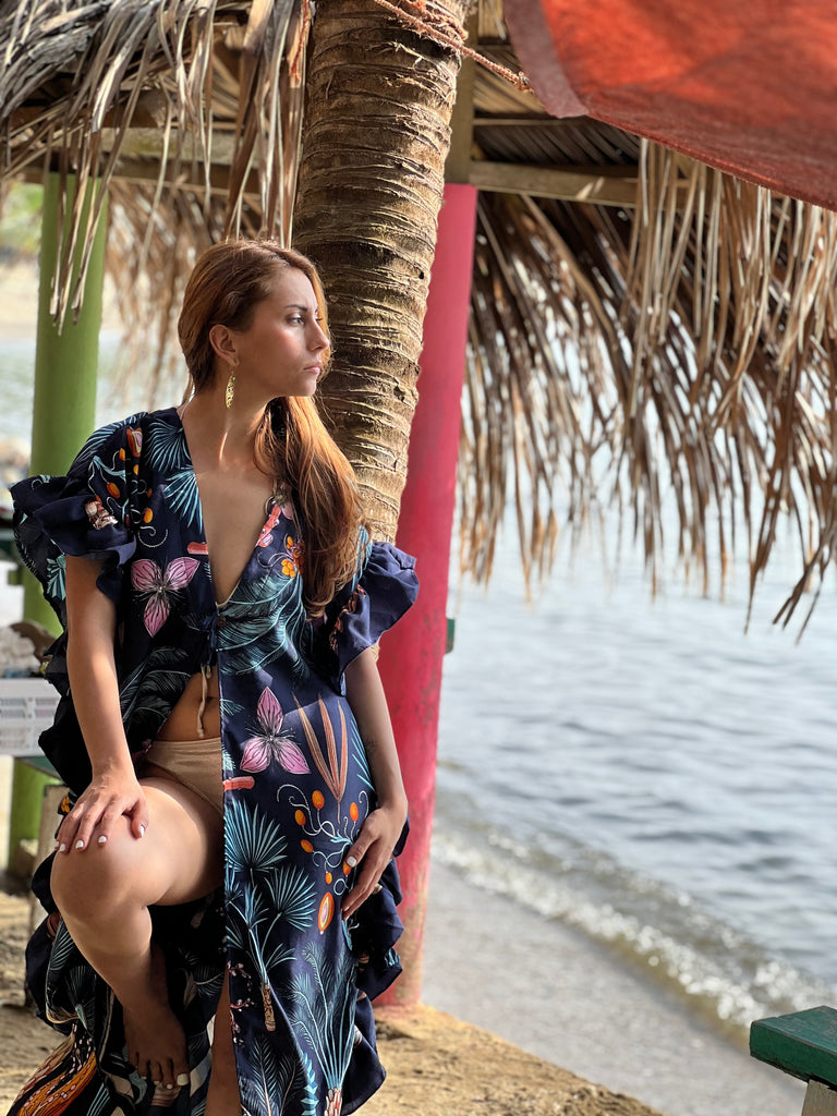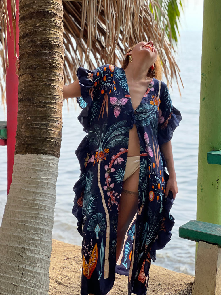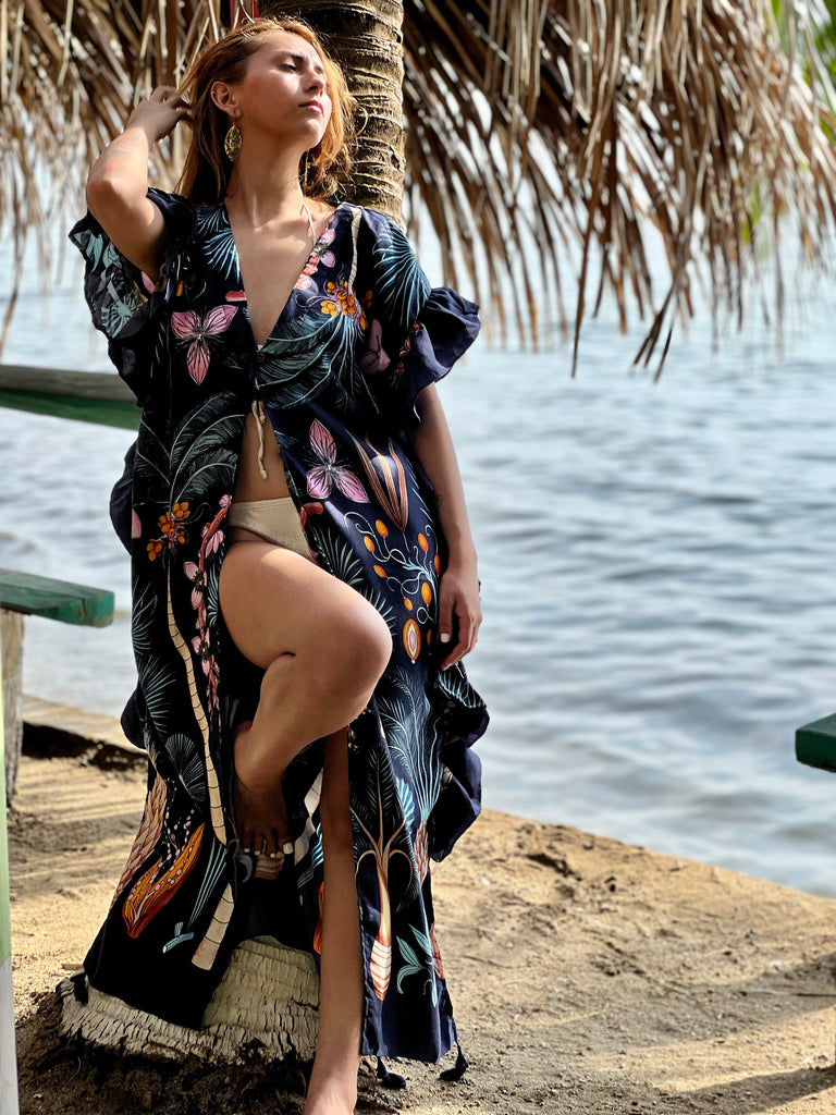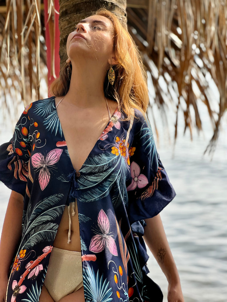 A long, flowy kimono and matching cloth belt, perfect for a day around town, a beach outing, hanging with a friend or a night out!