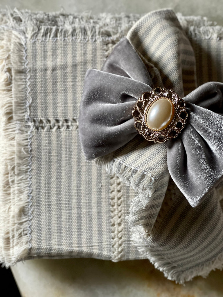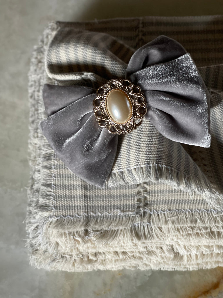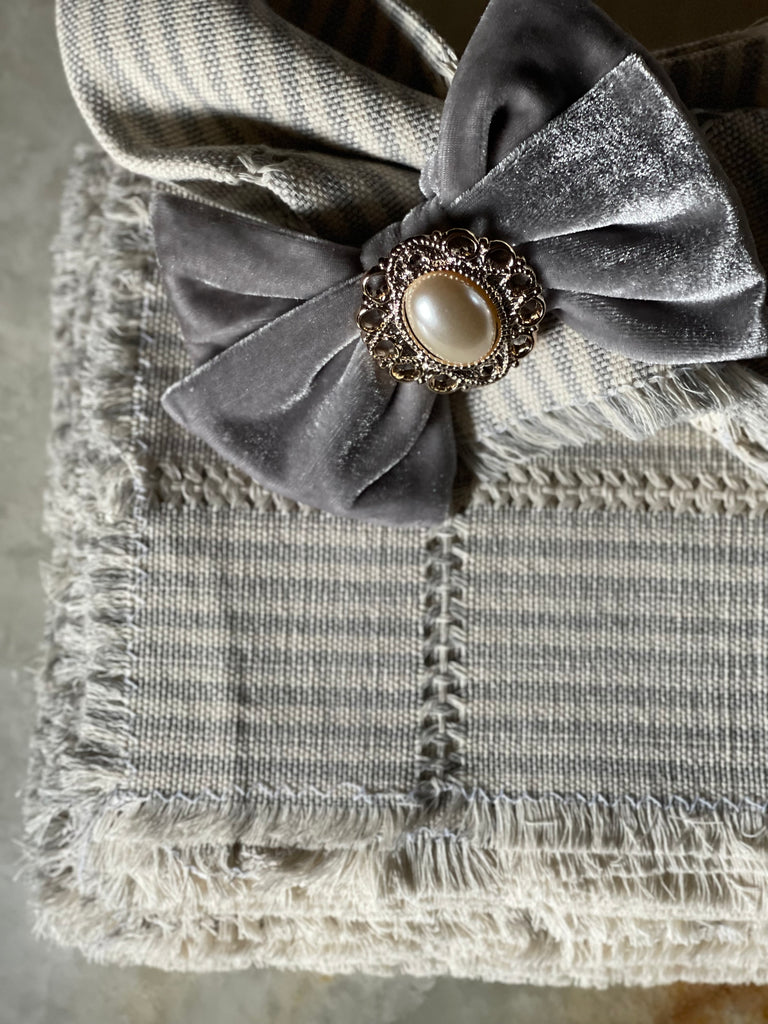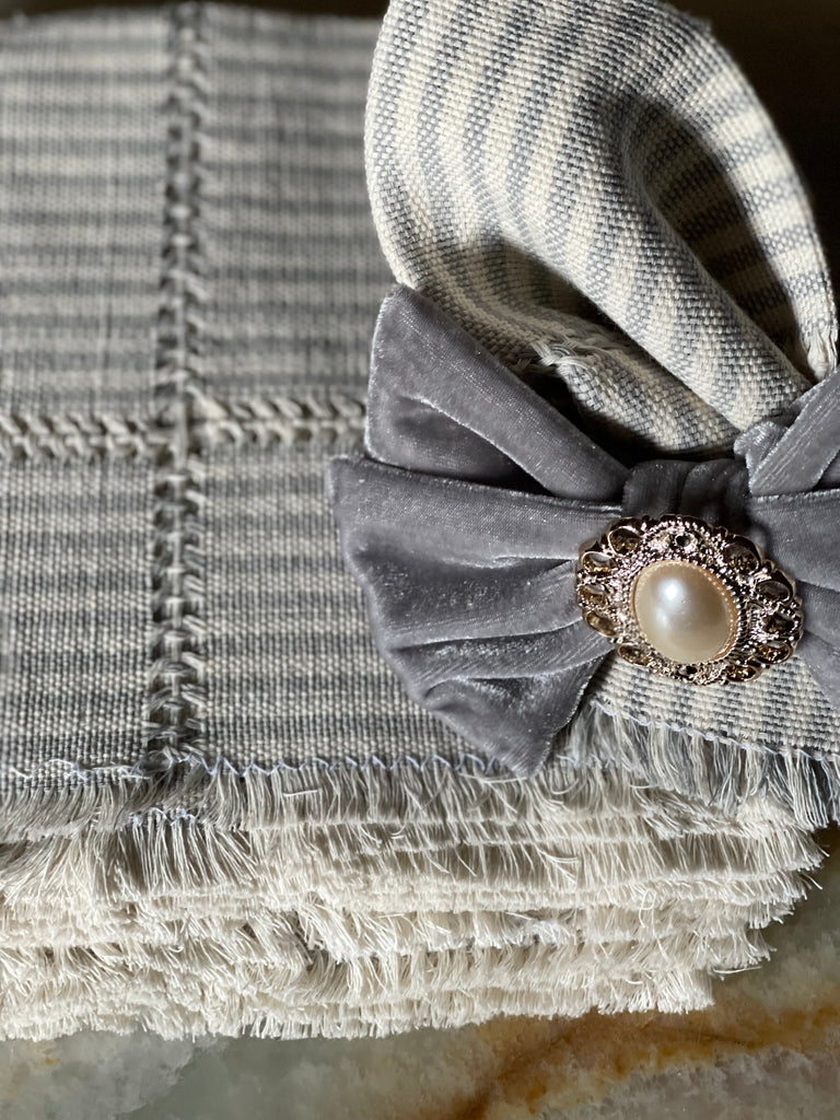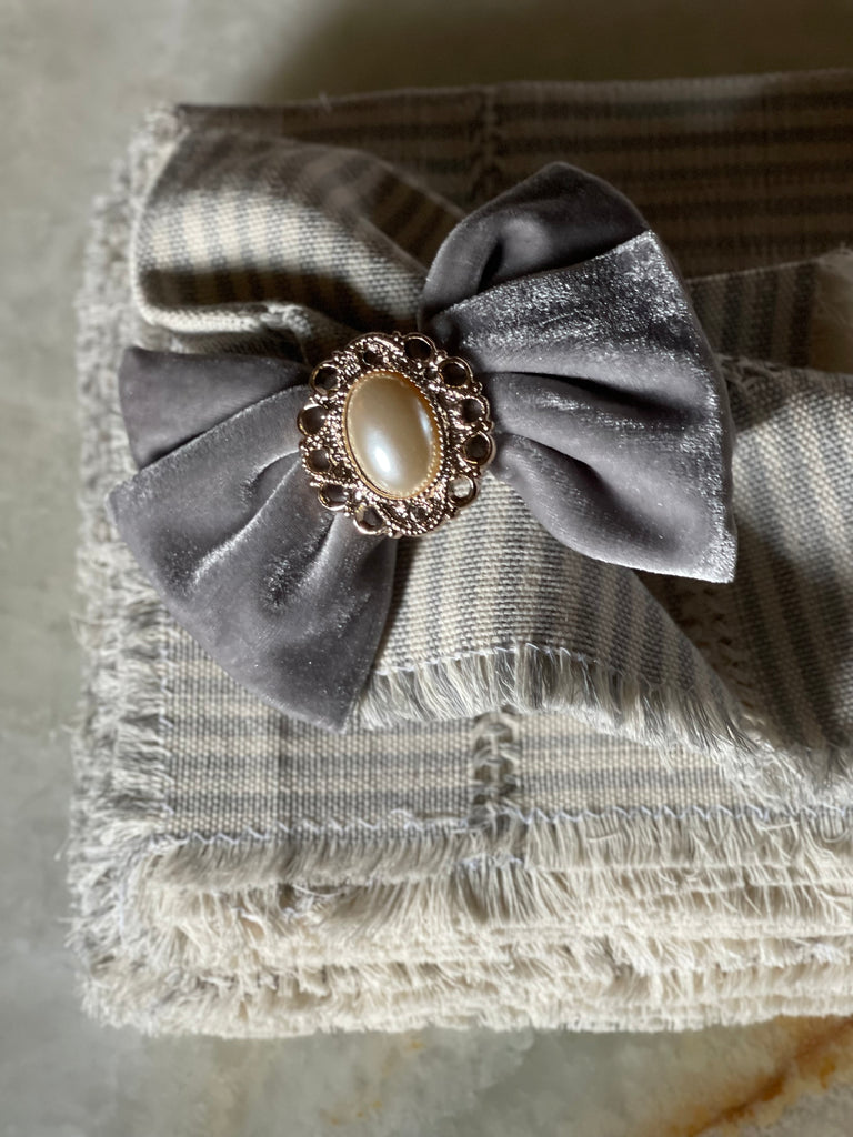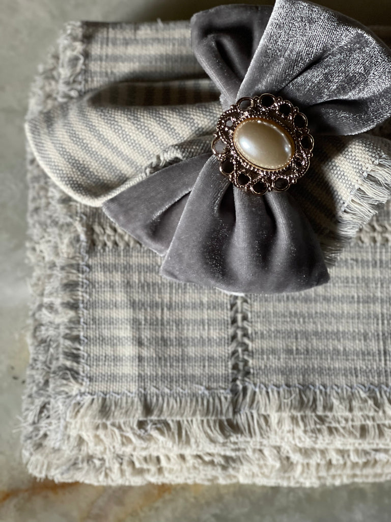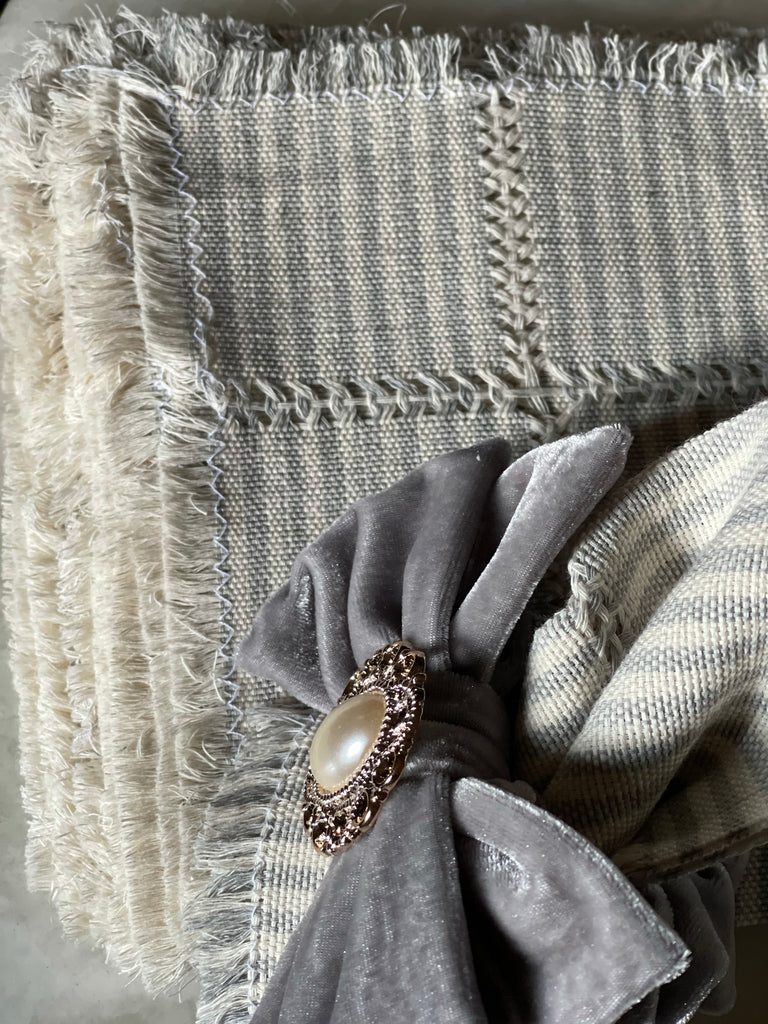 Set includes 8 beautifully handmade, organic cotton, woven napkins and 8 velvet napkin rings.