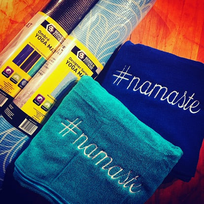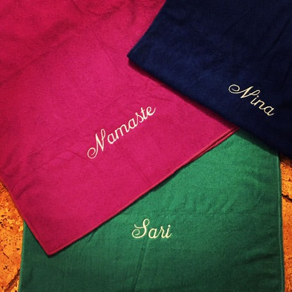 Yoga towel mats in playful and fun colors, personalized for the extra touch.